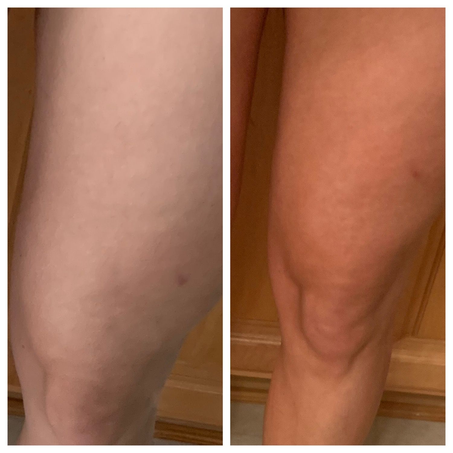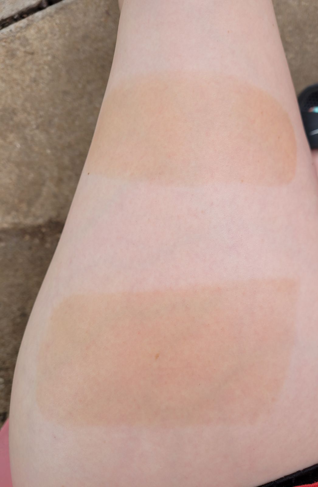 No orange streaking. Wonderful tropical smell. And the shade is perfect!! Love it so much, that I bought 8 bottles.